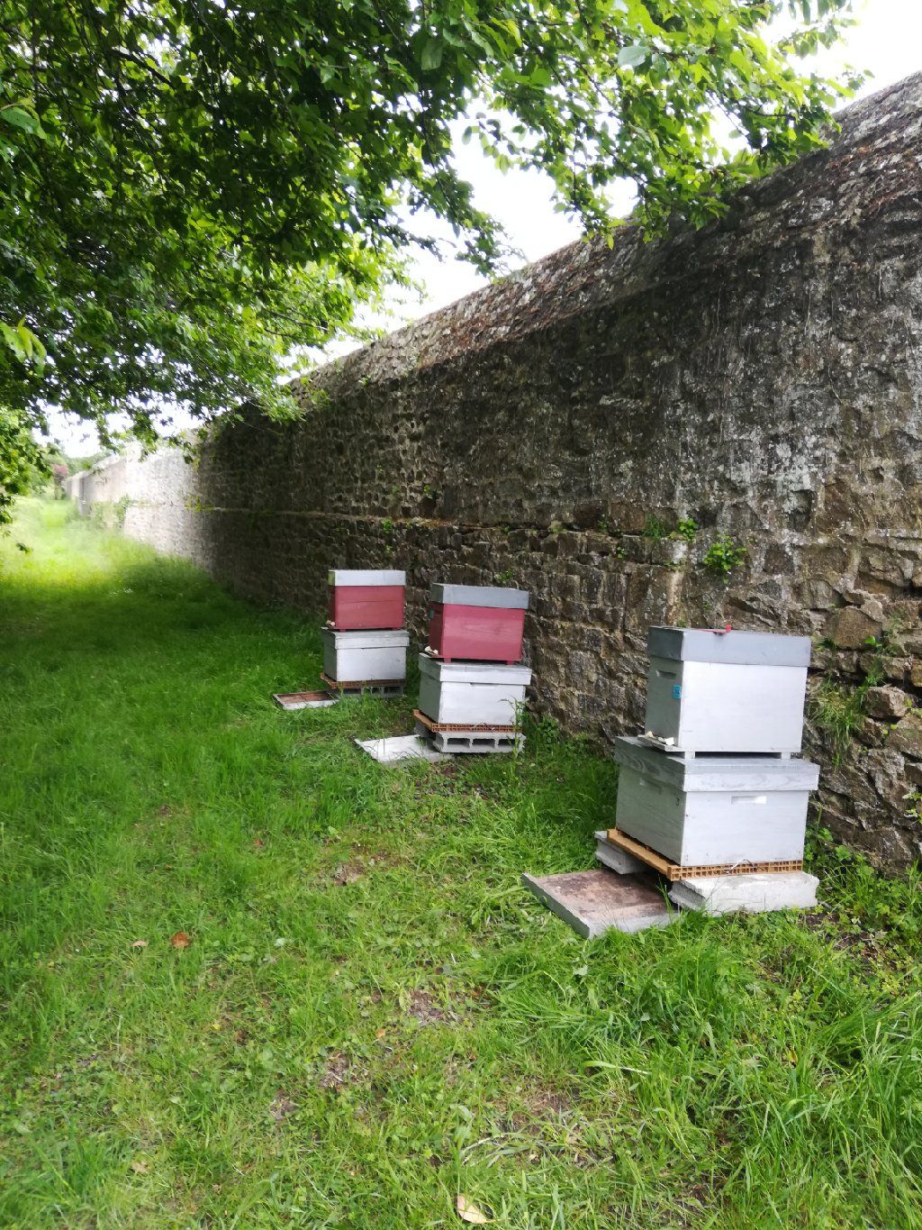 Un rucher vient d'être installé au niveau du parc du lycée. Il est pour l'instant constitué de 3 ruches, positionnées au niveau du mur du cimetière.