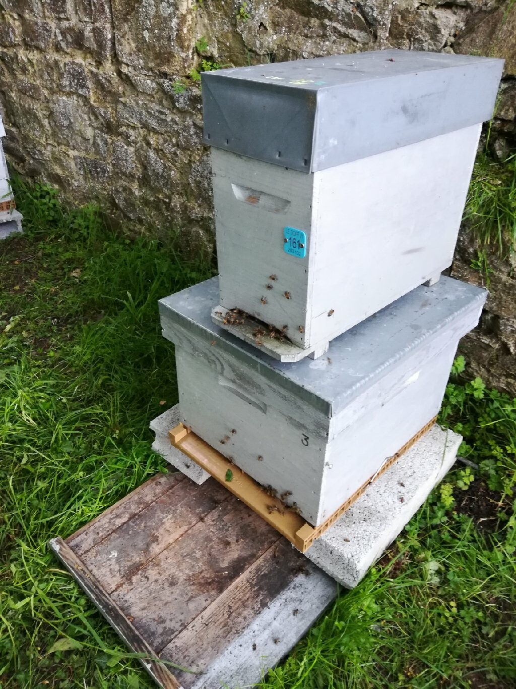 Dans l'attente de la finalisation de l'enclos de protection, nous vous informons que seules les personnes habillées avec l'équipement approprié (vareuses d'apiculteurs / gants / bottes) sont autorisées à les approcher.
