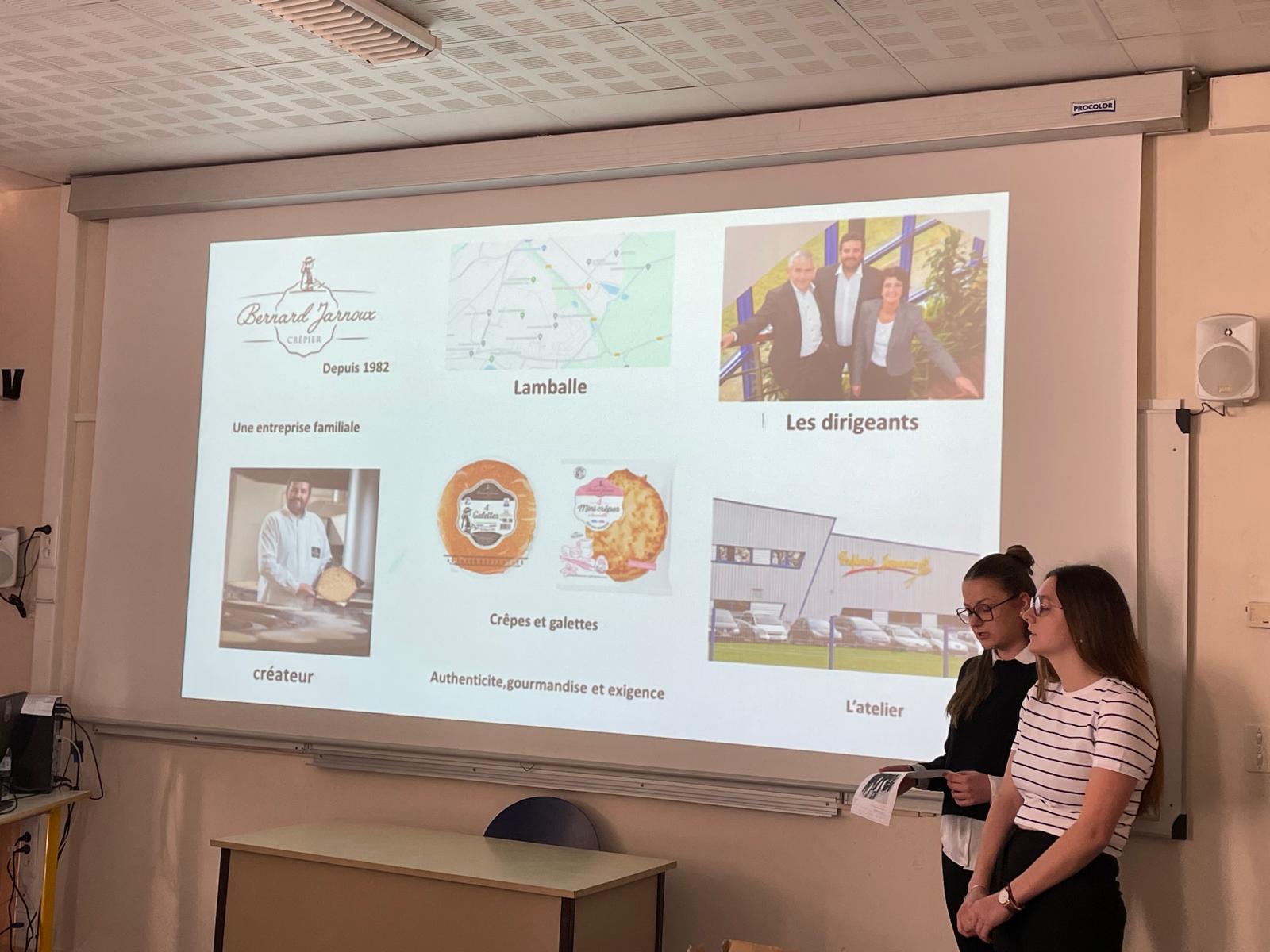 A l’issue de cette dégustation, c’était aux lamballais de faire découvrir le lycée Henri Avril, la région Bretagne et des produits locaux bretons. Les TAGORA se sont chargés de promouvoir Lamballe et la Bretagne. Grâce au partenariat avec la Crêperie Jarnoux, les TMCVA ont présenté l’entreprise (l’historique, les canaux de distribution, la démarche RSE, les produits…) puis ont fait déguster les crêpes moelleuses qui ont remporté un franc succès.