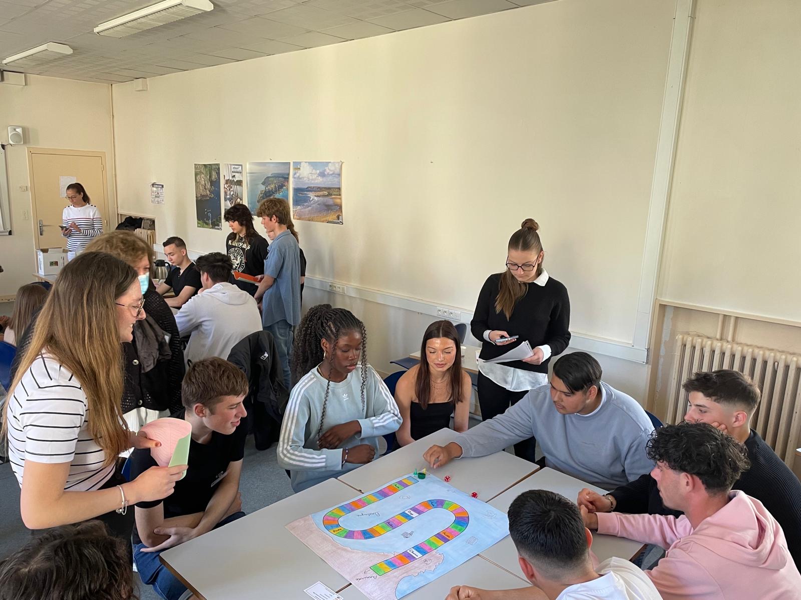 Ensuite, des équipes mixtes composées d’élèves basques et bretons se sont constituées pour jouer avec les jeux de société qui avaient été créés lors des séances de co-intervention commerce/lettres-histoire et également en arts appliqués.